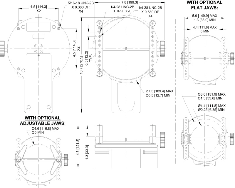 MESURgauge 測量軟件:可顯示時間與位移的關(guān)系、計算統(tǒng)計測量結(jié)果、Excel報告輸出等.需要數(shù)據(jù)線纜more info 加長圓柱:加長圓柱2.5" (63 mm) 4" (101 mm) 平口夾具:可用于夾持直角實驗樣品等 可調(diào)夾具CT003:4邊防滑設(shè)計、可調(diào)節(jié)開口尺寸、容納多種樣品規(guī)格 校準套件:可用于自行校準TT01瓶蓋扭力計,套件不包括砝碼。 攜帶式儀器箱:可裝TT01瓶蓋扭力計,夾具,充電器,及配件. 不銹鋼加載臺:預(yù)留安裝螺紋孔適用于特殊工裝的安排