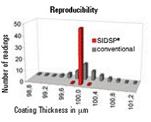 MINITEST 720/730/740涂層測(cè)厚儀SIDSP-測(cè)量信號(hào)高穩(wěn)定性 EPK的SIDSP探頭具有極高的重現(xiàn)性。將探頭放在同一測(cè)量點(diǎn)測(cè)量幾次,每次您都可以得到基本一樣的結(jié)果,再次證明了SIDSP探頭的優(yōu)秀性能。
