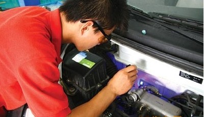 下圖為工作人員使用宏聲HsTech手電筒式BH-1320高強(qiáng)度紫外燈檢測(cè)泄漏圖: