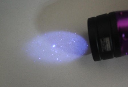 大多數(shù)的體液在高強度的紫外線作用下可以看到,是因為體液有自然熒光反射的特點。在復(fù)雜的刑偵現(xiàn)場,可以利用高強度的紫外線燈簡單及不復(fù)雜的使用方式尋找到有價值的痕跡。在高強度紫外線能量的激發(fā)下,這些體液的熒光反射是人的肉眼可以直接看到的。雖然,這種方式不能直接確認所找到的體液是哪一種,但是,通過使用高強度紫外線燈遠距離大面積的搜尋,可以直接幫助你確定在哪里有提取價值的痕跡物證,然后可以對 這些地方進行編號標(biāo)出,從而為下一步的分析提供有價值的物證。